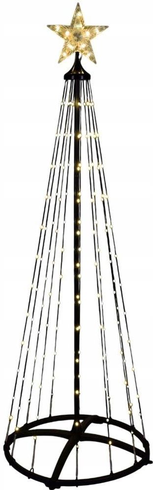 Choinka świecąca stożek zewnętrzna 150 cm Świecąca choinka stożkowa LED z gwiazdą - Nowoczesna dekoracja świąteczna w formie stożka o wysokości 150 cm i średnicy podstawy 50 cm. Składa się z 12 sznurów świetlnych zwieńczonych podświetlaną gwiazdą, a całość rozświetla łącznie 154 cyfrowych diod LED …