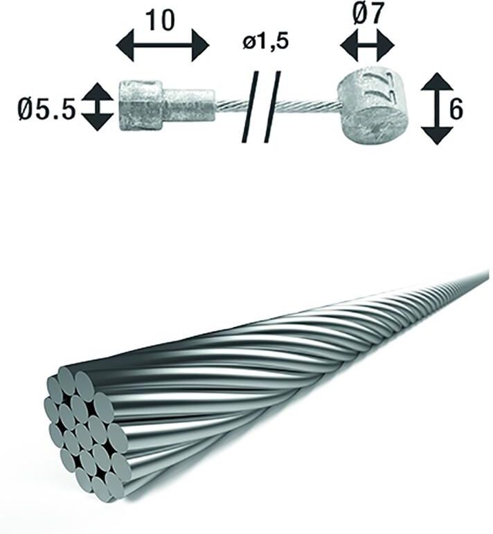 Główne informacje: Rodzaj: Linka hamulcowa; kompatybilny dla: Hamulec szczękowy, hamulec tarczowy; Technologia hamulca: mechaniczna; Kompatybilność: Campagnolo, Sram, Shimano; Materiał: Drut stalowy; Wymiary: Średnica: 1.5 mm; Waga: 46 g; Szczegóły: Specyfikacja wagowa dla długości 2,25 m