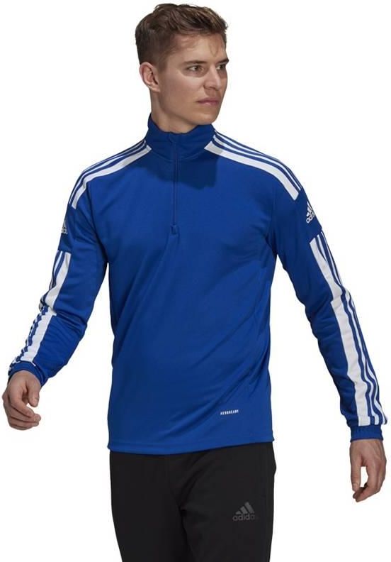 Bluza męska adidas Squadra 21 Training Top niebieska GP6475 Właściwości: Bluza dla mężczyzn adidas sprawdzi się podczas treningów. Szybkoschnąca tkanina z technologią Aeroready odprowadza nadmiar wilgoci. Zamek sięgający do połowy piersi zakończono patką chroniącą podbródek. Stójka. Ściągacze przy mankietach. Małe logo oraz paski biegnące wzdłuż rękawów. Ten produkt jest wykonany z Primegreen, linii wysokiej jakości materiałów pochodzących z recyklingu. Materiał: 100% poliester pochodzący z recyklingu
