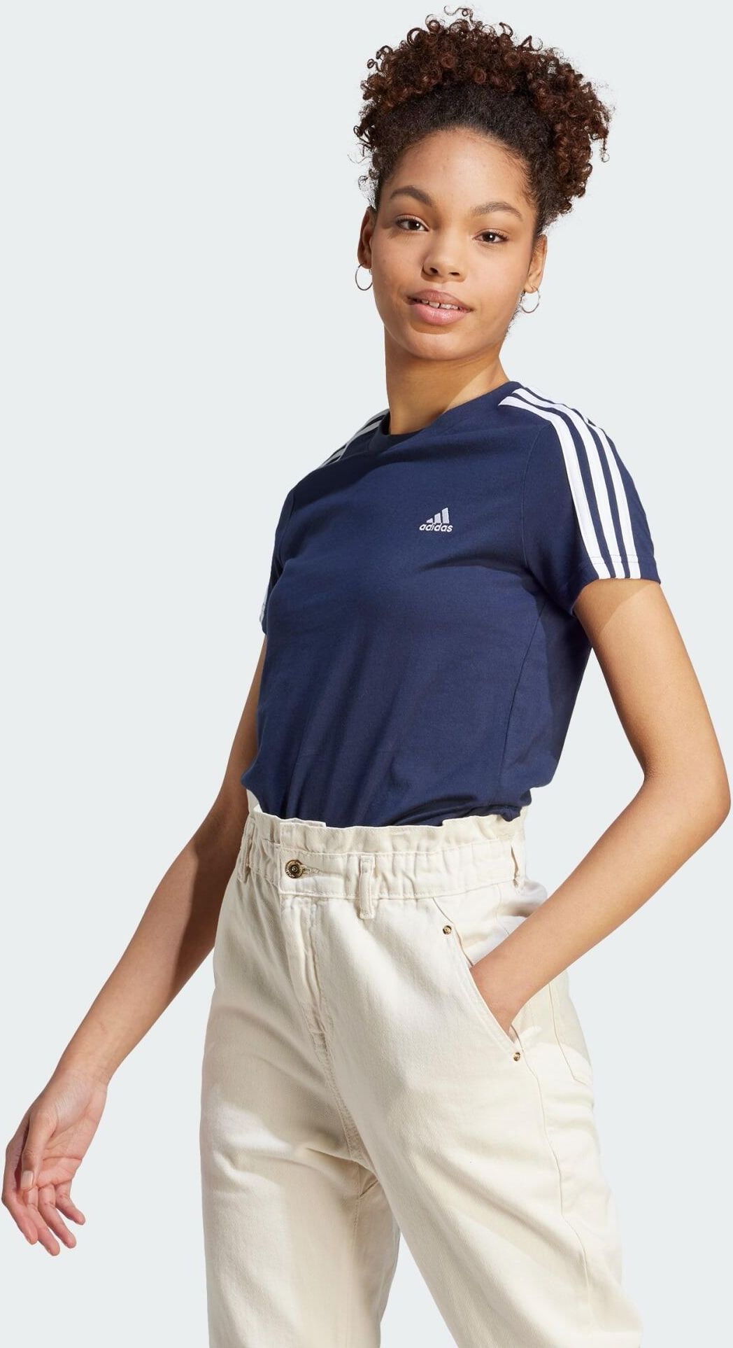 Koszulka damska adidas prezentuje klasyczny design z trzema paskami na rękawach, które podkreślają autentyczny charakter modelu. Postaw na sportową wygodę i swobodny look w ponadczasowym stylu podczas codziennych obowiązków. Miękka w dotyku, bawełniana konstrukcja zapewnia naturalny, swobodny oddech i przyjemnie osłania ciało. Dopasowany krój, podkreślający sylwetkę, nie krępuje ruchów i dba o pełen komfort w czasie aktywności. Zaokrąglony dekolt ze ściągaczem jest estetycznym wykończeniem, które podkreśla sportowy styl. Koszulka adidas z białymi detalami tworzy stonowany model, który wpasuje się w codzienne stylizacje. Zadbaj o komfort w kultowym wydaniu. Materiał: 100% bawełna damska koszulka firmy adidas logo adidas krój slim tył koszulki bez motywów i napisów 3 charakterystyczne paski na ramionach Tabela rozmiarowa Rozmiar XS Długość całkowita: 60 cm Szerokość w klatce: 2 x 38 cm Długość od pachy: 38 cm Długość rękawa od szyi: 28 cm Rozmiar S Długość całkowita: 62 cm Szerokość w klatce: 2 x 42 cm Długość od pachy: 40 cm Długość rękawa od szyi: 29 cm Rozmiar M Długość całkowita: 64 cm Szerokość w klatce: 2 x 46 cm Długość od pachy: 41 cm Długość rękawa od szyi: 29 cm Rozmiar L Długość całkowita: 65 cm Szerokość w klatce: 2 x 50 cm Długość od pachy: 42 cm Długość rękawa od szyi: 31 cm Rozmiar XL Długość całkowita: 66 cm Szerokość w klatce: 2 x 53 cm Długość od pachy: 43 cm Długość rękawa od szyi: 33 cm Rozmiar XXL Długość całkowita: 69 cm Szerokość w klatce: 2 x 58 cm Długość od pachy: 45 cm Długość rękawa od szyi: 34 cm *margines błędu +/- 2 cm **produkt mierzony na płasko