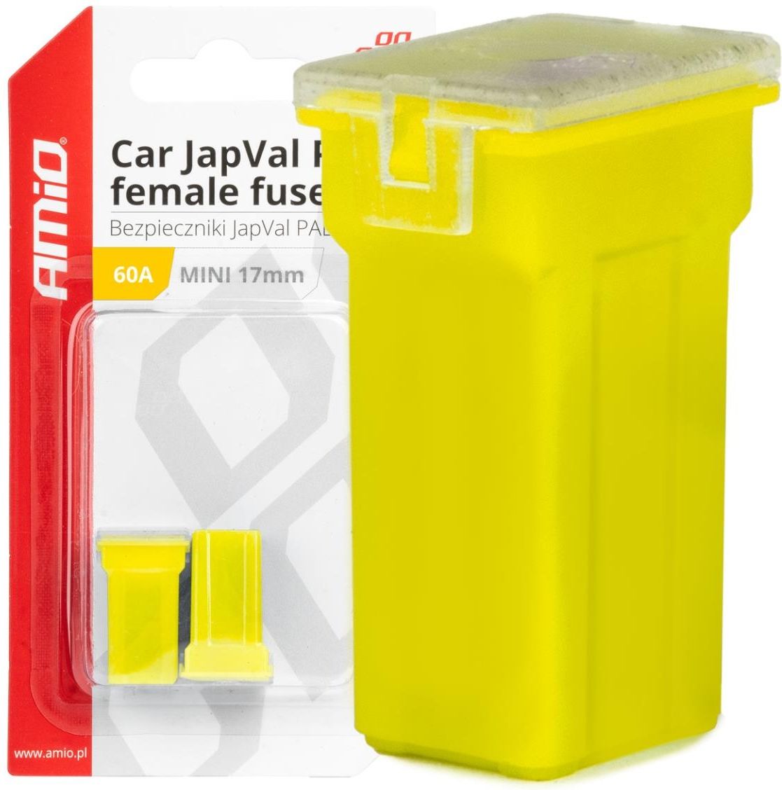 Bezpieczniki samochodowe JAPVAL PAL żeńskie 2 szt. 60A AMIO-03447 03447 Bezpieczniki JAPVAL PAL FEMALE pełnią rolę ochronną dla układów elektrycznych, zapobiegając przeciążeniom. Wybór konkretnego bezpiecznika zależy od mocy danego obwodu. Cena za dwie sztuki. Charakterystyka: Typ: JAPVAL PAL female żeński mini Wymiary: 17mm Prąd znamionowy: 60A Pakowanie: 2 sztuki w blistrze Bezpieczniki samochodowe JAPVAL PAL żeńskie 2 szt. 60A AMIO-03447 03447