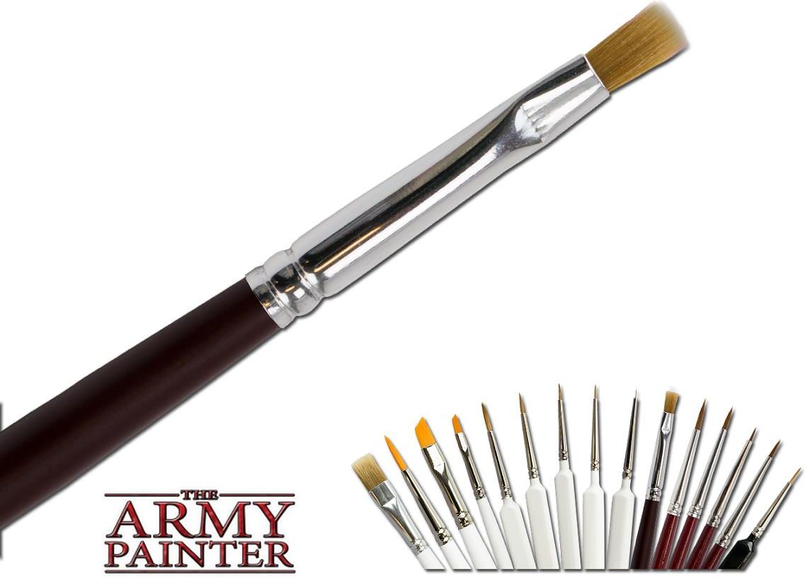 Włosie tego pędzla Hobby Drybrush jest płaskie i szorstkie, idealne do techniki drybrush. Pędzel jest wyposażony w okrągłą rączkę, która umożliwia wygodny chwyt. - Doskonały do malowania teksturowanych powierzchni - Nylonowe włosie tego pędzla do malowania na sucho jest grubsze i doskonale nadaje się do malowania na sucho wielu modeli, wydobywając teksturowane detale, takie jak futro, łuski i kolczuga. - Doskonały dla początkujących - Nasze pędzle hobbystyczne są doskonałym pierwszym narzędziem dla początkujących malarzy miniatur, którzy szukają bardziej przystępnego cenowo narzędzia, lub dla graczy, którzy potrzebują solidnego narzędzia, które wykona swoją pracę. - Wysokiej jakości nylonowe włosie - ten pędzel jest wykonany z syntetycznego włosia nylonowego. Nylon zapewnia sprężystą końcówkę pędzla, co pozwala na intensywne użytkowanie przez długi czas. - Zrodzony z gry - The Army Painter jest pomysłem wieloletnich weteranów gier wojennych i malarstwa. Traktuj swoje pędzle właściwie, a będą Ci służyć długo: - Napełniaj pędzel farbą tylko do końca jego końcówki - Czyść w zimnej wodzie natychmiast po użyciu. - Przechowuj pędzle końcówką do góry - Sucha farba w końcówce pędzla zniszczy twój pędzel