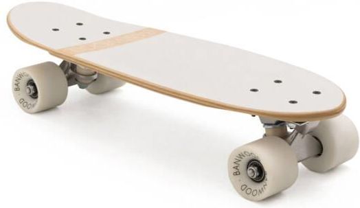 Banwood Skateboard to niewielka deskorolka typu cruiser zaprojektowana z myślą o relaksującej jeździe, z której mogą cieszyć się zarówno początkujący, jak i doświadczeni skaterzy. Wykonany z naturalnego klonu kanadyjskiego, deck posiada miękką, przezroczystą taśmę antypoślizgową, idealną dla delikatnych stóp Twojego malucha. Deski wyposażone są w miękkie koła o dużej sprężystości, zaprojektowane do łatwej i stabilnej jazdy. Nowa kolekcja deskorolek Banwood łączy prostotę i funkcjonalność z wyrafinowanym wzornictwem w stylu vintage. Deskorolki dostępne są w 8 pastelowych wzorach a każdy z nich przeniesie Was do złotego wieku Kalifornii lat 70-tych. Specyfikacja techniczna: Zalecany wiek 3+ Waga: 1,9 kg Skład: - Deck z klonu kanadyjskiego z miękką przezroczystą taśmą antypoślizgową - Solidna, 8-warstwowa płyta - Wymiary: 51,9 x 17 cm - Logo Banwood z przodu i z tyłu Koła: - Białe koła o wysokiej sprężystości: (SHR80A PU) - Logo Banwood - Wymiary: 5,8 x 4,5 cm - Łożyska chromowane ABEC-7 - Odlew PU SHR90A