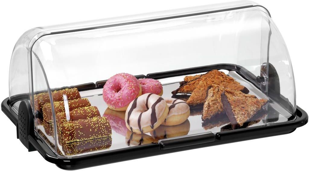 Witryna bufetowa na wkłady chłodzące SW10KP | BARTSCHER A500468 to eleganckie i praktyczne rozwiązanie do serwowania potraw wymagających niskiej temperatury w warunkach bufetowych. Dzięki zastosowaniu wkładów chłodzących, witryna działa bez konieczności podłączenia do zasilania, co zapewnia pełną mobilność i elastyczność ustawienia. Główne cechy: Przezroczysta pokrywa roll top umożliwia wygodny dostęp do potraw z obu stron oraz zapewnia higienę i ochronę przed zanieczyszczeniami. Funkcja chłodzenia realizowana jest za pomocą dwóch wkładów chłodzących, które utrzymują odpowiednio niską temperaturę bez użycia prądu. Płyta ze stali szlachetnej jest wyjmowana, co ułatwia przygotowanie ekspozycji i czyszczenie po zakończeniu serwisu. Funkcja chłodzenia: 2 wkłady chłodzące Wymiary powierzchni roboczej: 420 × 270 mm Płyta chłodząca: stal szlachetna, wyjmowana Pokrywa: przezroczysta, zdejmowana (polistyren) Materiał: stal szlachetna i tworzywo sztuczne Kolor: czarny Zalety produktu: Idealna do serwowania serów, wędlin, sałatek i innych potraw, które wymagają chłodzenia w strefie samoobsługowej. Możliwość łatwego demontażu pokrywy i elementów wewnętrznych znacznie przyspiesza czyszczenie i przygotowanie do kolejnego użycia. Kompaktowa konstrukcja i brak konieczności zasilania elektrycznego umożliwiają użytkowanie witryny w dowolnym miejscu – zarówno wewnątrz, jak i na zewnątrz. Estetyczny wygląd z czarną podstawą oraz pokrywą z polistyrenu doskonale komponuje się z nowoczesnymi aranżacjami bufetów Witryna bufetowa BARTSCHER SW10KP to idealny wybór dla hoteli, restauracji i firm cateringowych, które cenią sobie funkcjonalność, estetykę oraz niezawodne rozwiązania bez potrzeby podłączenia do zasilania.
