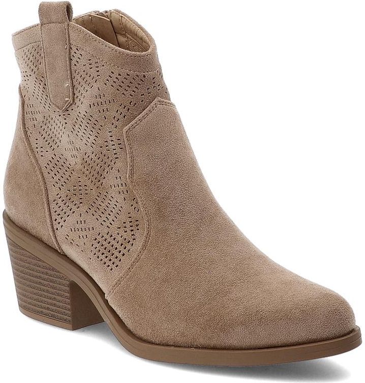 Beżowe Botki S.Barski Ażurowe Kowbojki Damskie