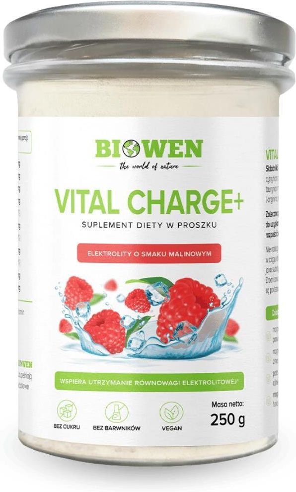 Biowen ELEKTROLITY Vital Charge+ MAGNEZ POTAS SÓD KARNITYNA Malinowe 250g Tychy