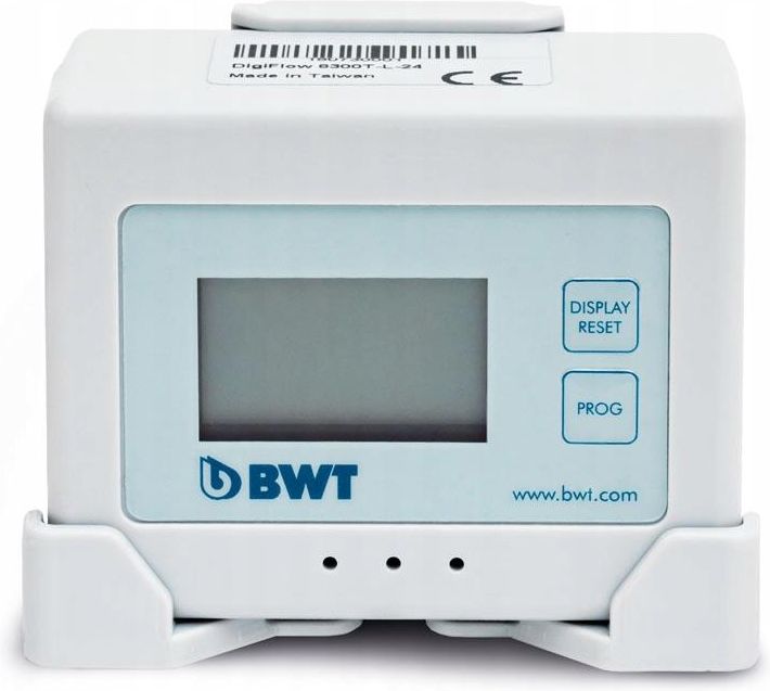 Elektroniczny licznik przepływu wody AQA monitor BWT, przepływomierz wody Elektroniczny licznik przepływu wody BWT AQA Monitor BWT AQA Monitor to nowoczesny elektroniczny licznik przepływu wody, który umożliwia stałe monitorowanie wydajności filtra. Dzięki dokładnym pomiarom oraz sygnalizacji dźwiękowej i świetlnej, zawsze wiesz, kiedy konieczna jest wymiana wkładu filtracyjnego, co zapewnia ciągłą jakość wody oraz ochronę urządzeń kuchennych. Jakie są zalety urządzenia? Precyzyjne monitorowanie pojemności filtra – licznik śledzi zużycie filtra i informuje o konieczności jego wymiany Sygnał dźwiękowy i świetlny – dioda LED i alarm dźwiękowy powiadamiają o kończącej się wydajności filtra Łatwa regulacja – możliwość dostosowania wydajności filtra do twardości wody i czasu eksploatacji Prosty montaż – kompaktowa konstrukcja umożliwia szybki montaż pod zlewem Ochrona urządzeń AGD – zapobiega osadzaniu się kamienia i przedłuża żywotność sprzętu kuchennego Parametry techniczne AQA monitor BWT Gwint przyłączeniowy: 3/8” gw x 3/8” gz Ciśnienie wlotowe (min/max): 2-8 bar Natężenie przepływu: 0,8 - 15 l/min (z odchyleniem natężenia przepływu +/- 5%) Temperatura wody: +4 - +30ºC Temperatura otoczenia: +4 - +40ºC Wymiary: długość 80 mm x szerokość 47mm x wysokość 30 mm Pozycja montażowa: pozioma