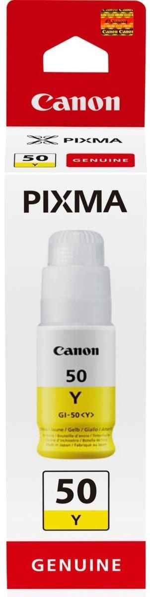 Canon GI -50Y Żółty Tusz CANON w kolorze żółtym to wydajny wysokiej jakości oryginał do drukarek Canon. Pasuje do drukarek: PIXMA G5050, G6050, G7050 i G7040. Kolor :  Żółty Pojemność [ml] :  70 Wydajność do [str] :  7700