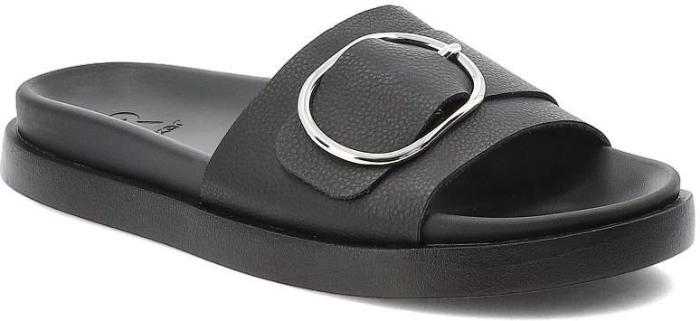 Czarne Klapki Rieker Skórzane Obuwie Damskie Tychy