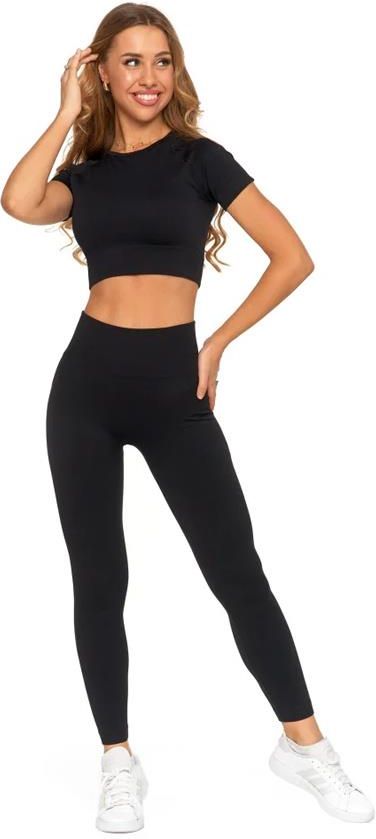 Czarny Damski Sportowy Komplet Top+Legginsy Moraj