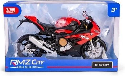 Motor model 1:12 RMZ HOBBY BMW S1000RR 2020 Regular Model 2020 BMW S1000RR wykonany jest z plastiku i metalunbsp; na gumowych oponach w skali 1:12 firmy RMZ CITY. Motor posiada skrętną kierownicę , obrotowe koła, gumowe opony i amortyzowane tylne zawieszenie. Model posiada rozkładaną boczną stopkę lub można go postawić na specjalnej podstawce, która została dołączona. Przedstawiony model wiernie odwzorowuje oryginał. Model w skali 1:12 posiada drobne, delikatne elementy konstrukcyjne, co sprawia, że małe dzieci mogą je uszkodzić podczas intensywnej zabawy. Dlatego zwracamy na to szczególną uwagę w trosce o Państwa dzieci. Rekomendowane dla dzieci powyżej 12-stego roku życia wymiary opakowania : 20,5 cm x 12 cm x 7 cm wymiary modelu : 17 cm x 6 cm x 9,5 cm