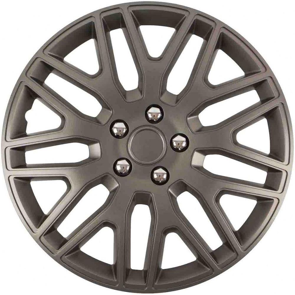 Kołpaki pasują do większości modeli samochodów wyposażonych w stalowe felgi. Dzięki możliwości regulacji obręczy można idealnie dopasować kołpak do felgi. Nie nadają się jedynie do felg wypukłych ZALETY: WYSOKA JAKOŚĆ zastosowanego tworzywa ABS WYTRZYMAŁOŚĆ ? odporne na uderzenia i zmienne warunki atmosferyczne BEZPIECZEŃSTWO ? zatrzaski z tworzywa sztucznego nie powodują uszkodzenia felg ŁATWOŚĆ MONTAŻU ? bez użycia dodatkowych narzędzi EFEKTOWNY WYGLĄD Aby wybrać prawidłowy rozmiar kołpaka należy sprawdzić średnicę felgi ? informację taką można odczytać na oponie. Liczba następująca po symbolu ?R? oznacza średnicę opony. MONTAŻ: Zdejmij zbędne pokrywy z felgi i oczyść jej zewnętrzną stronę Ustaw stalowy pierścień rozprężny w pozycji z wcięciem pod wentyl i wciśnij go w gniazda łapek zaciskowych. Przyłóż kołpak do felgi, tak aby miejsce na wentyl w kołpaku pokrywało się z wentylem w feldze. Nałóż kołpak na dolną część felgi, podeprzyj kolanem, górne dwie łapki zaciskowe przyciśnij (uchyl) palcami od góry w dół kołpaka i jednocześnie wciśnij kołpak do wewnątrz rantu felgi. Dociśnij na całym obwodzie felgi.