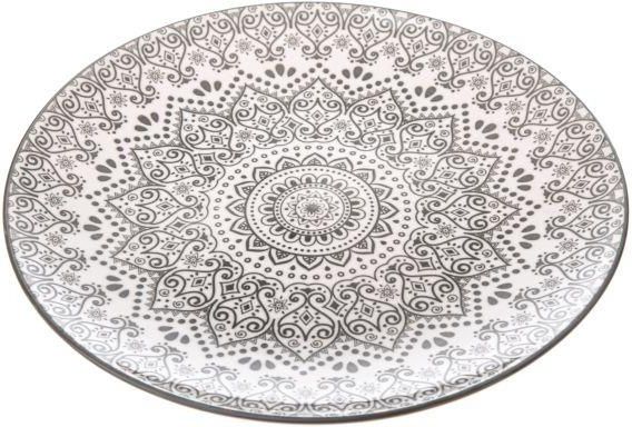 Porcelanowy talerz obiadowy płytki zdobiony szarym, orientalnym wzorem na kremowym tle oraz szarym rantem czeskiej firmy Dakls. Średnica talerza 27 cm. Talerz obiadowy, płytki może posłużyć nam podczas przygotowania wykwintnego śniadania, pożywnego obiadu, czy też nawet podczas spotkań z …