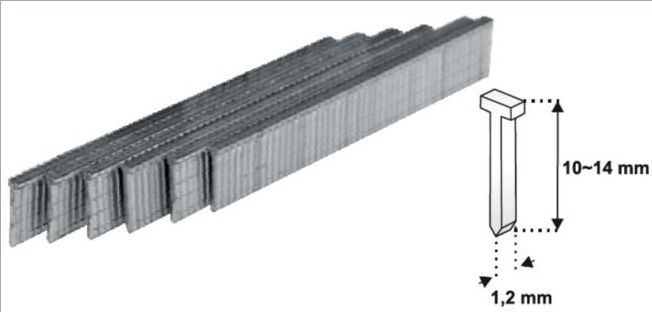 DEDRA GWOŹDZIE , SZTYFTY DO GWOŹDZIARKI, TAPICERSKIE 14MM 1000SZT/OPAK 11Z314Gwoździe D11T, sztyfty przeznaczone do ręcznego zszywacza tapicerskiego, takera. Przeznaczone do: 11Z003Cechy charakterystyczne:Galwanizowane.Parametry:Typ gwoździa, sztyftu D11TWysokość: 14 mmGrubość: 1,2 …