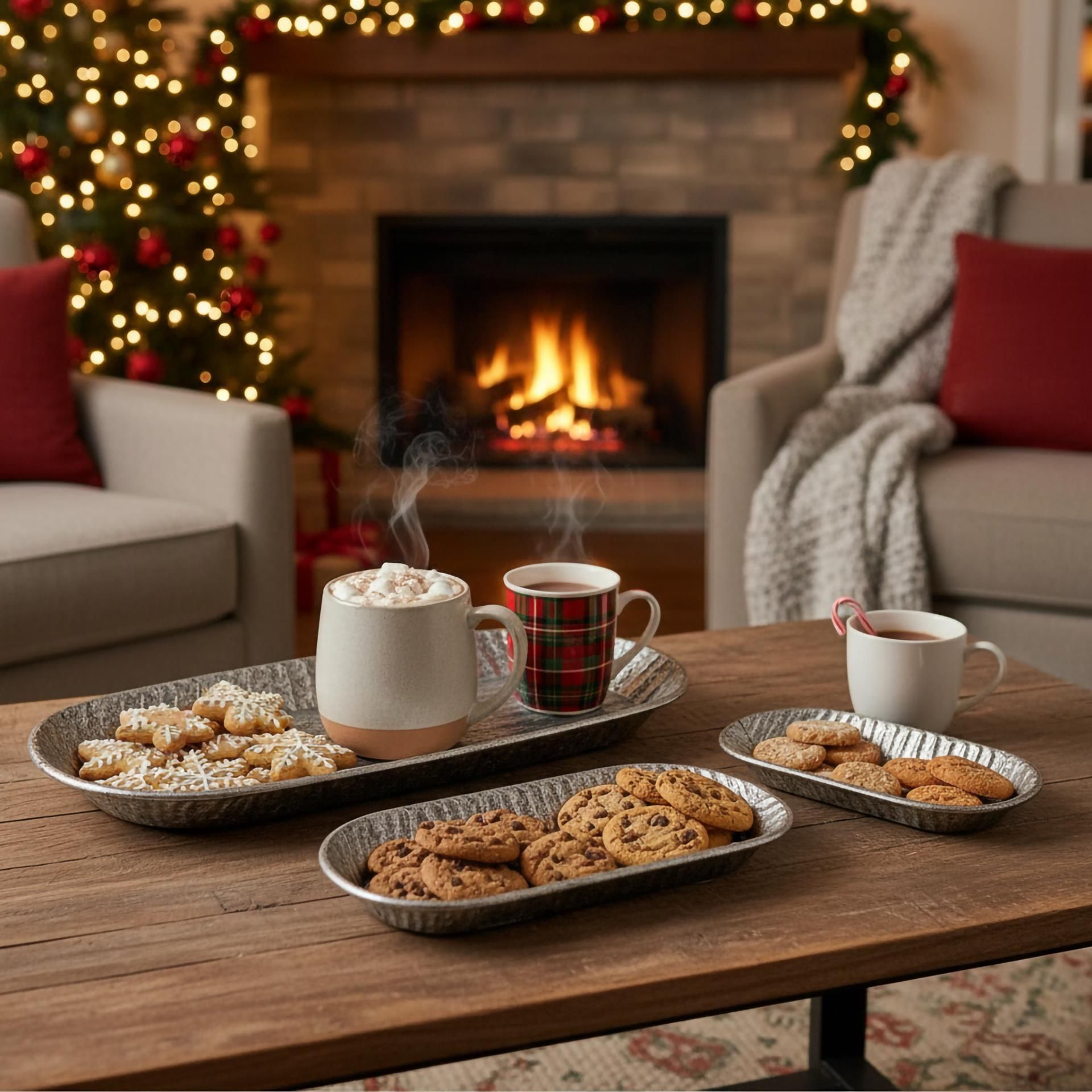 Tacka dekoracyjna zestaw 3 sztuk – metal Wprowadź do swojego domu świąteczny porządek i elegancję dzięki zestawowi trzech metalowych tacek o różnych rozmiarach (38,5x19 | 48,5x23 | 58x27 cm). Idealne do dekoracji, tworzą przytulną i stylową atmosferę podczas zimowych wieczorów. Ich minimalistyczny, a zarazem elegancki design sprawia, że każda kompozycja nabiera wyjątkowego charakteru. To praktyczny i piękny dodatek, który w subtelny sposób podkreśli magię Świąt w Twoim domu.