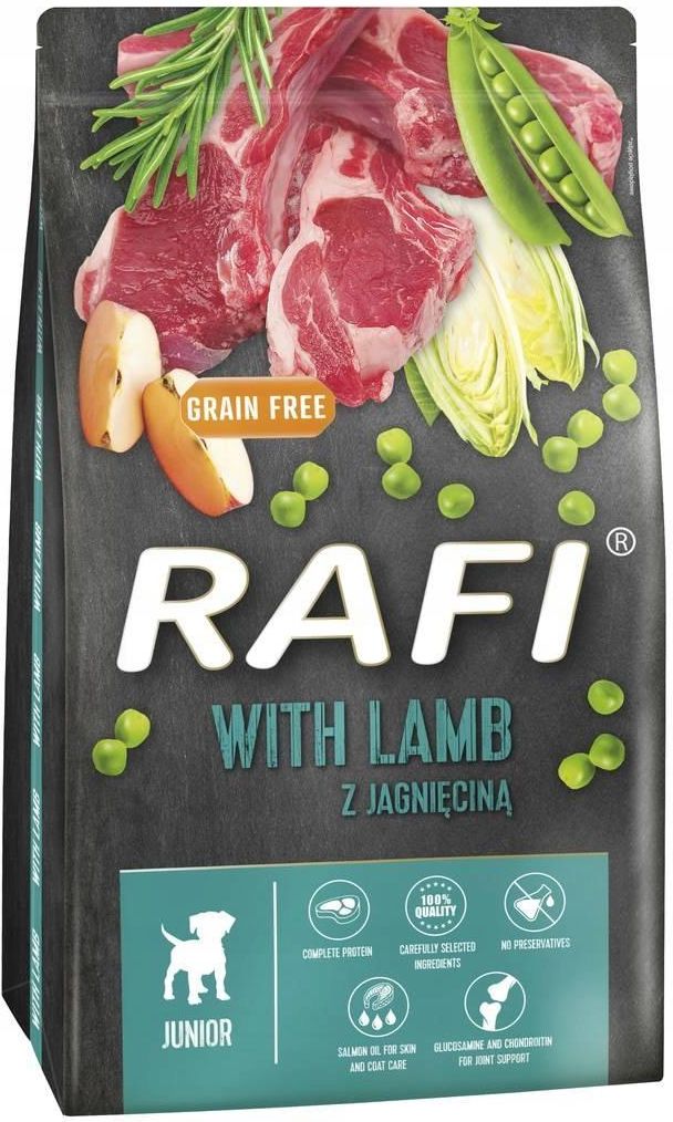 Karma sucha dla psa RAFI Junior z jagnięciną worek 10 kg Cechy produktu: pełnowartościowebiałko najwyższej jakości mięso opracowana zgodnie z nowoczesnymi zaleceniami dotyczącymi żywienia kotów – zawiera kompletny zestaw witamin i składników mineralnych wzbogacona o składniki prebiotyczne Skład: …