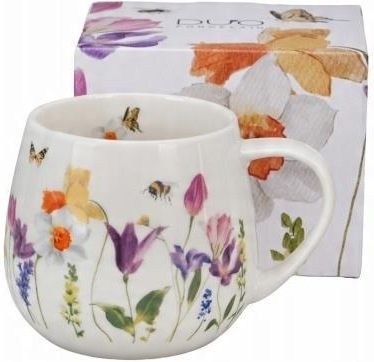 Kubek baryłka May – Kwiaty Classic – 430 ml Zanurz się w atmosferze majowego ogrodu, gdzie każdy kubek herbaty czy poranna kawa smakują lepiej. Kubek May z kolekcji Kwiaty Classic to esencja wiosennej świeżości zamknięta w eleganckiej formie baryłki o pojemności 430 ml (pojemność liczona po rant kubka) – idealnej na codzienne rytuały pełne spokoju i koloru. Wykonany z porcelany New Bone, kubek zachwyca lekkością i subtelnym połyskiem. Jego powierzchnię zdobi pełna życia, kwiatowa kompozycja: żonkile w słonecznych odcieniach żółci i pomarańczy, fioletowe i różowe tulipany, frezje oraz lawenda otulone zielonymi liśćmi. Całość dopełniają delikatny motyl i latająca pszczoła, które dodają scenerii ruchu, energii i prawdziwej radości. To nie tylko kubek – to kwitnący fragment ogrodu w Twoich dłoniach. Idealny, by zatrzymać się na chwilę i odetchnąć, niezależnie od pory dnia. A dzięki możliwości używania w zmywarce i kuchence mikrofalowej, piękno idzie tu w parze z wygodą. Zapakowany w ozdobne pudełko, kubek May to świetny pomysł na prezent – dla bliskiej osoby lub po prostu... dla Ciebie. Wzór: May Produkt 1 x kubek 1 x prezentowe pudełko Wymiary wysokość 9 cm średnica górna kubka 8 cm długość kubka z uszkiem 12 cm waga kubka 312 g pojemność całkowita kubka 430 ml pojemność użytkowa kubka około 400 ml wymiary pudełka 12 cm x 10,5 cm x h9,7 cm Materiał porcelana Użytkowanie dopuszczone do kontaktu z żywnością można myć w zmywarkach można używać w mikrofali