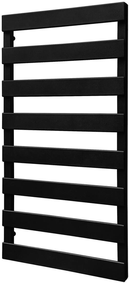 Emporia OTUS grzejnik 105x50 moc 370W czarny mat OTUS1050-500-CMZD O produkcie Otus to grzejnik łazienkowy marki Emporia. Jego długość wynosi 105 cm, a szerokość 50 cm. Grzejnik w kolorze czarnego matu. Posiada moc 370 W oraz zasilanie dolne. W komplecie z grzejnikiem zestaw montażowy. Grzejnik posiada zasilanie dolne. Do grzejnika należy dobrać odpowiednie zawory. Pasujące zawory to: zawór termostatyczny osiowy, prawy, czarny (EMPORIA-19640), zawór termostatyczny osiowy, lewy, czarny (EMPORIA-19641), zawór termostatyczny kątowy, czarny (EMPORIA-19643). Grzejnik Otus ma formę drabinkową, dzięki czemu drabinki mogą posłużyć jako wieszaki do suszenia ręczników. Montowany jest na ścianie, co pozwala na zaoszczędzenie miejsca. Sprawdzi się więc również w mniejszych łazienkach. Grzejnik ma prosty, subtelny i elegancki wygląd, co umożliwi dopasowanie go do wielu aranżacji łazienek. Oprócz praktycznego zastosowania doda także walorów estetycznych pomieszczeniu. Uwaga! Zdjęcie aranżacyjne to tylko zdjęcie poglądowe. W sprzedaży grzejnik z zasilaniem dolnym. Specyfikacja Producent/Dystrybutor: Emporia Numer katalogowy: OTUS1050-500-CMZD Seria: OTUS Moc [W]: 370 W Kolor producenta: czarny mat Wysokość grzejnika [cm]: 105 Szerokość grzejnika [cm]: 50