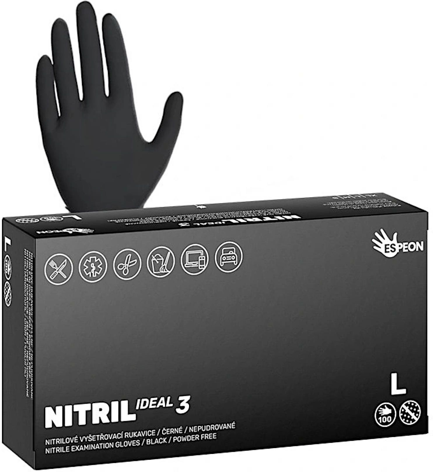 Rękawiczki nitrylowe Espeon Nitril Ideal 3 - 100 szt - czarne - L, Espeon 100185