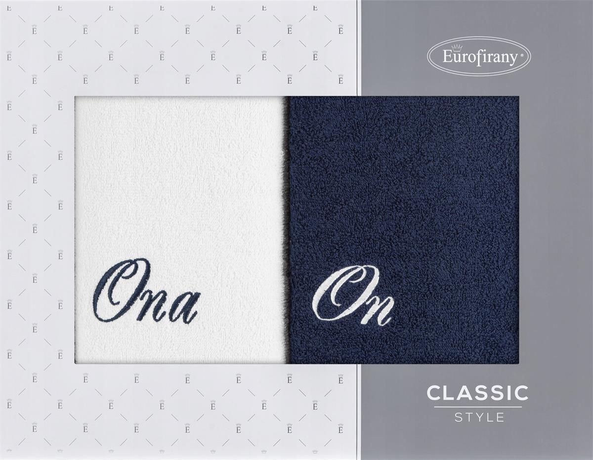 Eurofirany Komplet Ręczników W Pudełku 2Szt. 70X140 On Ona Biały Granatowy Tychy