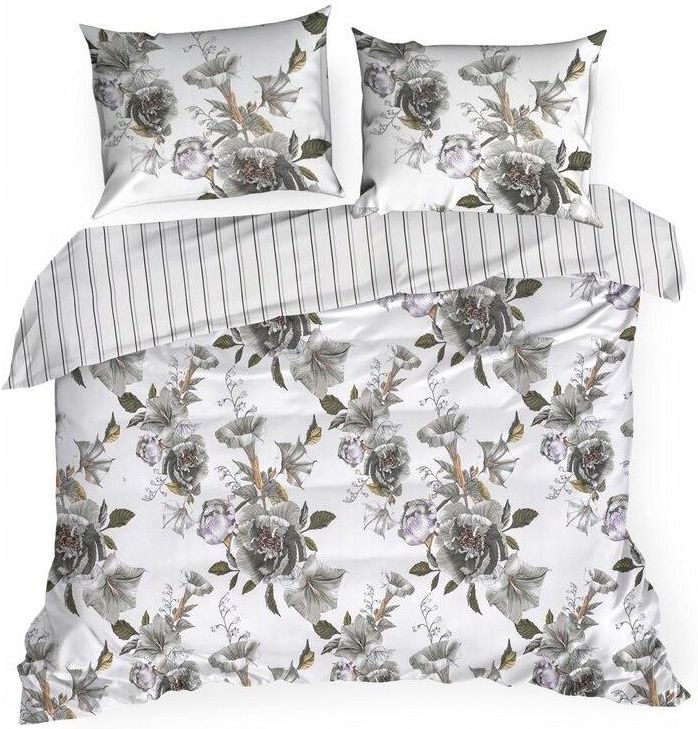 Eurofirany Pościel satynowa 140x200 Spring 39 biała szara kwiaty NEW24 (1767418740) Tychy