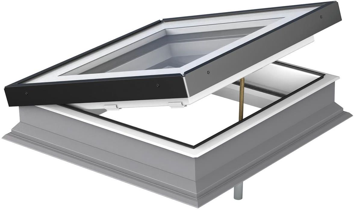 XYZ Okno od góry przykryte jest specjalnym szklanym segmentem składającym się z szyby hartowanej o grubości 4mm lub 6mm w zależności od rozmiaru oraz ze specjalnie przygotowanego profilu aluminiowego w kolorze czarnym z białym stepem. Szklany segment jest fabrycznie zamontowany na oknie, co znacznie skraca czas jego montażu. Najważniejsze cechy okna: ościeżnica wykonana jest z wielokomorowych profili PVC wypełnionych materiałem termoizolacyjnym, duża ilość naturalnego światła. Do 16% większa powierzchnia przeszklenia w stosunku do konkurencyjnych rozwiązań dzięki specjalnie zaprojektowanym kształtom profili okna, okno posiada antywłamaniowy, jednokomorowy pakiet szybowy P2 z wewnętrzną szybą laminowaną w klasie P2A zapewniającą bezpieczeństwo użytkowania i chroniącą przed odłamkami szkła w przypadku uszkodzenia. Opcjonalnie dostępny pakiet antywłamaniowy P4 z laminatem w klasie P4A, otwierane ręcznie za pomocą załączonego drążka o dł. 2,2 m. Uchylenie skrzydła wynosi 30cm, najwyższa 5 klasa odporności na uderzenie wg EN 14351-1, okna dostępne są w kilkunastu typowych rozmiarach od 60x60cm do 120x220cm, na specjalne zamówienie możliwe jest wykonanie okien w rozmiarach nietypowych z zakresu od 60x60 do 120x220cm. Pozwala to na wymianę istniejących naświetli, często o niestandardowych wymiarach, które nie spełniają obecnych wymagań termoizolacyjnych, może być osadzone na dodatkowej podstawie XRD lub XRD/W o wysokości 15cm, która pozwala na podniesienie okna, umożliwiając jego montaż np. na zielonym dachu, montowane w dachach o kącie nachylenia od 2° do 15°, dla okien w rozmiarach 140x140 i 120x220 od 5° do 15°, jeśli kąt nachylenia dachu jest mniejszy niż 2° lub wskazane jest zwiększenie kąta montażu, należy zastosować kątową ramę montażową XRD/A, która montowana bezpośrednio pod oknem zwiększy o 3° lub 5° kąt jego montażu, konstrukcja okien umożliwia montaż zarówno akcesoriów wewnętrznych jak i zewnętrznych, zewnętrzna szyba hartowana z wieczystą gwarancją odporności na grad, 10 lat gwarancji na okna.