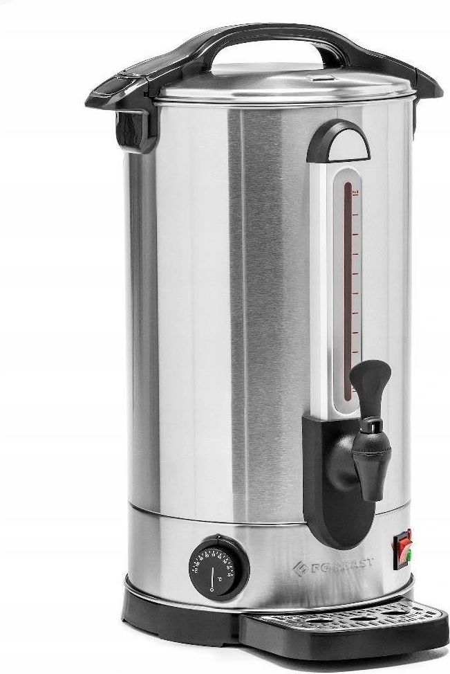 Forgast Warnik 16L FG05556 Przepływowe podgrzewacze wody cieszą się rosnącą popularnością w domach i firmach na całym świecie. Są to urządzenia, które zapewniają natychmiastowy dostęp do ciepłej wody, co jest niezwykle wygodne i oszczędne. Dzięki nowoczesnym technologiom i różnorodności dostępnych modeli, każdy może znaleźć idealny podgrzewacz dla swoich potrzeb. Wśród nich wyróżnia się Forgast Warnik 16L FG05556, który łączy w sobie zaawansowaną technologię z eleganckim designem. Typ i wydajność Forgast Warnik 16L FG05556 to elektryczny model przepływowego podgrzewacza wody, który charakteryzuje się pojemnością użytkową 16 litrów. Moc urządzenia wynosi 1,6 kW, co zapewnia szybkie podgrzewanie wody do pożądanej temperatury. Dzięki temu warnik doskonale sprawdza się zarówno w domowych warunkach, jak i w miejscach publicznych, gdzie potrzebny jest stały dostęp do gorącej wody. Kontrola i funkcjonalność Urządzenie jest wyposażone w termostat, który umożliwia precyzyjne ustawienie temperatury wody. Dzięki temu użytkownik może dostosować temperaturę do swoich potrzeb, unikając przypadkowego przekroczenia punktu wrzenia (ok. 95°C). Dodatkowym atutem są lampki kontrolne funkcji grzania i podtrzymania temperatury, które informują o aktualnym stanie pracy urządzenia. Bezpieczeństwo i instalacja Forgast Warnik 16L FG05556 został zaprojektowany z myślą o bezpieczeństwie użytkowania. Podwójne ścianki wykonane z wysokogatunkowej stali nierdzewnej nie tylko wspomagają utrzymanie ciepła, ale również zmniejszają ryzyko poparzeń dzięki niższej temperaturze obudowy. Urządzenie posiada ochronę przed przegrzaniem oraz przed pracą bez wody, co dodatkowo zwiększa jego bezpieczeństwo. Blokowana pokrywa z uchwytem zabezpiecza zawartość przed przypadkowym otwarciem. Zasilanie i kompatybilność Zasilanie modelu odbywa się za pomocą standardowego napięcia 230 V, co sprawia, że jest on kompatybilny z większością domowych instalacji elektrycznych. Dzięki temu montaż urządzenia jest prosty i nie wymaga specjalistycznych narzędzi ani dodatkowych adapterów. Energooszczędność i materiały Dwuściankowa konstrukcja obudowy wykonana z wysokogatunkowej stali nierdzewnej wspomaga utrzymanie ciepła oraz zmniejsza pobór energii elektrycznej. Dodatkowo, nienagrzewające się uchwyty boczne i uchwyt pokrywy wykonane z polipropylenu zwiększają komfort użytkowania. Model ten jest także wyposażony w grzałkę umieszczoną pod dnem, co zabezpiecza ją przed pojawieniem się kamienia. Wymiary urządzenia Dzięki kompaktowym wymiarom (długość: 33,5 cm, szerokość: 33,5 cm, wysokość: 56,5 cm), warnik łatwo zmieści się na kuchennym blacie lub w innym dogodnym miejscu. Waga netto wynosi 3,6 kg, co ułatwia przenoszenie urządzenia. Dodatkowe funkcje Poniżej przedstawiamy dodatkowe funkcje urządzenia: wbudowana tacka ociekowa, niekapiący kran wykonany z polipropylenu, czytelny wskaźnik poziomu wody zabezpieczony przed uszkodzeniem, dwuściankowa obudowa dla lepszej izolacji cieplnej. Podsumowanie Forgast Warnik 16L FG05556 to doskonały wybór dla osób poszukujących niezawodnego i energooszczędnego podgrzewacza przepływowego do gorącej wody. Jego pojemność użytkowa 16 l, moc 1,6 kW, precyzyjny termostat oraz zaawansowane funkcje bezpieczeństwa sprawiają, że jest to produkt idealny zarówno do użytku domowego, jak i komercyjnego. Kompaktowe rozmiary oraz wysoka jakość wykonania gwarantują satysfakcję każdego użytkownika.