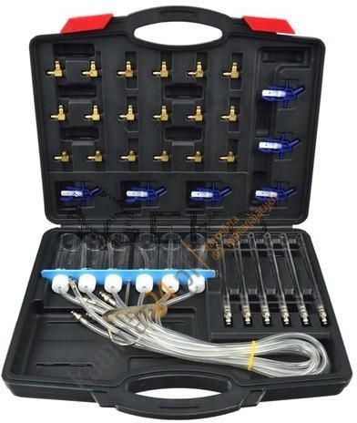 TESTER CIŚNIENIA WTRYSKIWACZY COMMON RAIL GEKO Przyrząd przeznaczony jest do diagnostyki wtryskiwaczy w silnikach Diesla maksymalnie 6-cio cylindrowych, wyposażonych w system zasilania paliwem Common Rail Pozwala na łatwą i szybką diagnozę wtryskiwaczy na podstawie pomiaru ilości paliwa odprowadzanego na przelewie wtryskiwaczy Dzięki temu w łatwy sposób można stwierdzić ewentualne uszkodzenia, zabrudzenia czy nieszczelności wtryskiwaczy Diagnostyka polega na podłączeniu próbników lub listwy probierczej, za pomocą odpowiednich adapterów do przewodów przelewowych wtryskiwaczy oraz porównaniu ilości paliwa podawanego przez poszczególne wtryskiwacze Podawanie większej lub mniejszej dawki paliwa przez którykolwiek wtryskiwacz oznacza jego wadę Może być używany podczas rozruchu silnika lub podczas jego pracy jednocześnie na 6 cylindrach ZAWARTOŚĆ ZESTAWU Na wyposażeniu miernika znajdują się końcówki do wszystkich produkowanych aktualnie systemów Common Rail t.j. Bosch, Denso, Delphi i Siemens 6 sztuk menzurek dużych z wężykami i końcówkami do systemu - Bosch 6 sztuk menzurek małych do systemu - Bosch 6 złączek do systemów – Delphi 6 złączek do systemów – Denso 6 złączek do systemów – Siemens 12 dodatkowych uszczelek 3 x 1.5 6 dodatkowych uszczelek 1 x 3.5 6 dodatkowych uszczelek 4x1