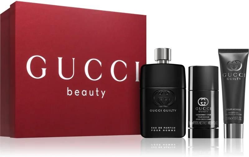 Gucci Guilty Pour Homme, 1 szt., Zestawy dla mężczyzn dla mężczyzn, Podkręć intensywność swojego ulubionego zapachu. Zestaw perfum dla mężczyzn Gucci Guilty Pour Homme zawiera nie tylko sam zapach, ale także kosmetyki pielęgnacyjne o tej samej nucie zapachowej, co sprawi, że Twoja codzienna rutyna w łazience będzie idealnie spójna. Właściwości: doskonały pomysł na prezent sprawi radość każdemu mężczyźnie zestaw zawiera perfumy i dodatki kosmetyczne z tej samej linii kosmetyki perfumowane przedłużają trwałość zapachu Zawartość zestawu: Gucci Guilty Pour Homme woda perfumowana 90 ml Gucci Guilty Pour Homme żel pod prysznic 50 ml Gucci Guilty Pour Homme dezodorant w sztyfcie 70 g