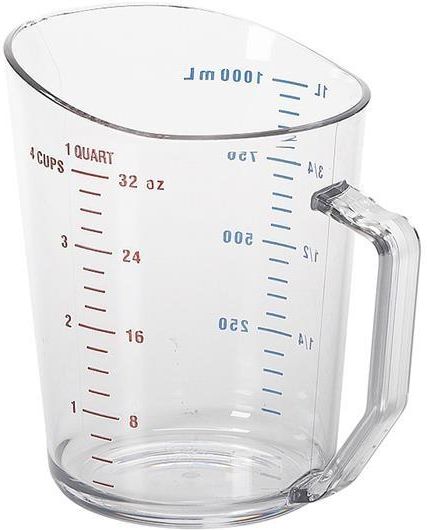 Miarka z uchwytem z poliwęglanu CAMBRO CAMWEAR® 1 l Przeznaczona do precyzyjnego odmierzania objętości produktów sypkich i płynów, Wykonana z materiału Camwear® – poliwęglanu odpornego na wgniecenia, plamy i działanie kwasów, Nie chłonie zapachów, Wyposażona w 2 podziałki – metryczną i amerykańską, Solidny uchwyt odporny na pęknięcia ułatwia przenoszenie, Nadaje się do mycia w zmywarkach