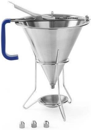 Pistolet do kremów i sosów o pojemności 1,5 l wykonany ze stali nierdzewnej. Przeznaczony do dozowania sosów o różnej konsystencji: majonezów, kremów, płynnej czekolady oraz do dekorowania potraw lub ciast i deserów. Dzięki konstrukcji zaworu zamykającego gwarantuje szczelność w pozycji zamkniętej. Ergonomiczny uchwyt z tworzywa. W wyposażeniu stojak i naczynie ociekowe. Pistolet ma 3 końcówki o średnicach: 2, 4 i 6 mm.