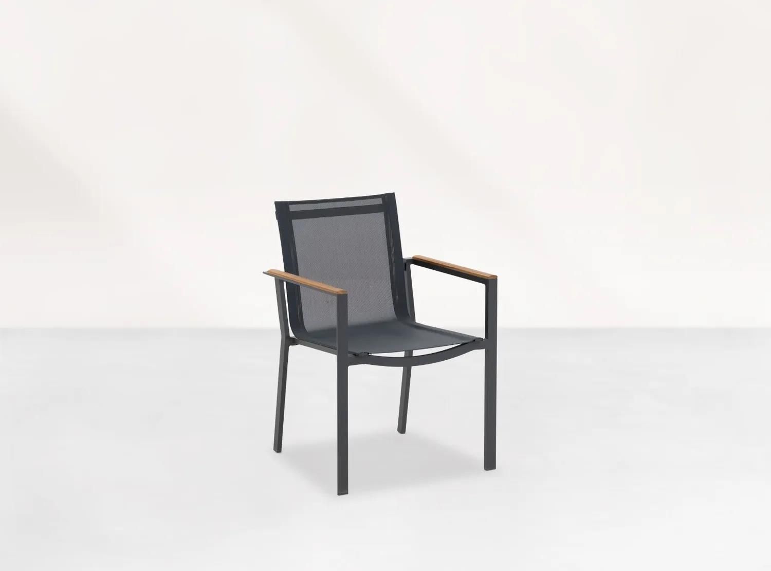 Krzesło sztaplowane Primavera Lava Teak Krzesło sztaplowane Primavera Lava Teak stanowi doskonałe uzupełnienie wyposażenia tarasu lub ogrodu, szczególnie jeśli chcesz nadać mu nowoczesny charakter. Jego konstrukcja została wykonana z grafitowego aluminium, a siedzisko pokryto wodoodporną tekstyliną o pasującym kolorze. Dodatkowo, krzesło zostało wyposażone w podłokietniki z drewna teakowego, co nadaje mu subtelny urok i urozmaica minimalistyczny wygląd. Kolor: Aluminium - lava (grafitowe) Materiał: Konstrukcja krzesła - aluminium Podłokietniki - drewno teakowe Wymiary: Szerokość - 59cm Głębokość - 60cm Wysokość - 86.5cm