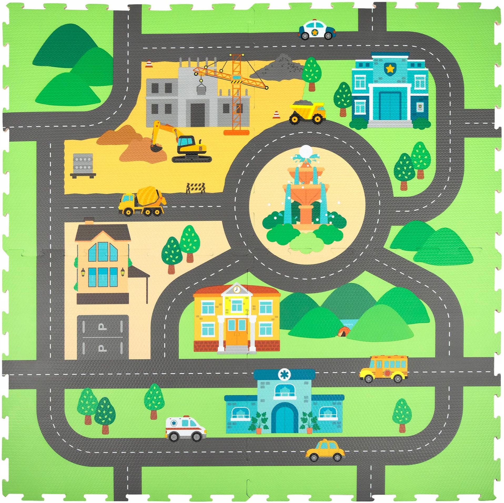 Mata piankowa dla dzieci puzzle miasto ulice drogi IPLAY PIANKOWA MATA - PUZZLE Idealna jakomiejsce zabaw dla maluchów 12 kolorowych elementów (30x30 cm) Całkowity wymiar: 114x86 cm Grubość maty:1 cm Mata łączona na zasadzie puzzli Wykonana ze specjalnego, certyfikowanego tworzywa EVA Możliwość …