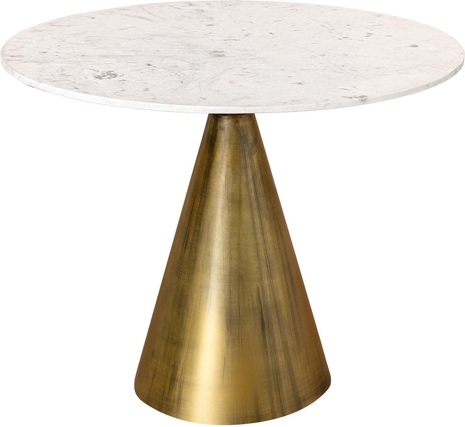 Dla miłośników nowoczesnego desingu ! Wymiary: 100 cm (średnica) × 77 cm (wysokość) Blat: biały marmur, lakierowany Grubość blatu: 1,5 cm Podstawa: metal malowany proszkowo Kolor podstawy: miedziany Średnica podstawy: 49 cm Maksymalne obciążenie: 60 kg Waga: 47 kg Styl: nowoczesny, industrialny …