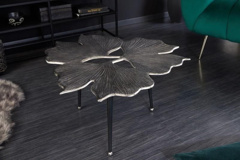 STOLIK KAWOWY GINGKO 75X73 CM SREBRNY Ten nowoczesny stolik kawowy zawdzięcza swój imponujący wygląd wysokiej jakości blatowi. Wyjątkowość tego mebla stanowi wygląd odzwierciedlający idealnie miłorząb japoński koloru srebrnego, wzór liścia wykonywany jest za pomocą precyzyjnego frezowania ręcznego, dzięki czemu kusi swoją autentycznością oraz unikalnością. Blat ten został postawiony na stabilnej aluminiowej podstawie koloru czarnego z dodatkami srebrnymi. Stolik ten doskonale sprawdzi się w nowoczesnym salonie odzwierciedlającym styl Glamour. W serii GINGKO występują również dekoracje ścienne, komody oraz stoliki w różnych rozmiarach oraz kolorach - patrz produkty powiązane. Invicta Interior to niezawodny dostawca ekskluzywnych designerskich mebli i akcesoriów domowych. Jest to dynamiczna i doświadczona firma z wieloletnimi międzynarodowymi kontaktami i stale poszukującą nowych produktów i innowacyjnych pomysłów. Dojrzała ogólna koncepcja firmy pozwala zaoferować klientom duży wybór nowoczesnych i klasycznych mebli o wyjątkowej jakości w rozsądnych cenach. Invicta Interior monitoruje wszystkie aktualne trendy w branży meblowej, dlatego klienci zawsze otrzymują najnowsze i najwyższej jakości designerskie meble.