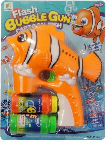 Plastikowy pistolet na bańki w kształcie rybki wraz z dołączonym płynem do baniek. Zabawka pozwoli wytworzyć dzieciom duże ilości tak ulubionych przez nie baniek mydlanych. Produkt zapakowany w kartonową podstawkę z przezroczystym kloszem. Podane wymiary są wymiarami opakowania. Produkt występuje w …