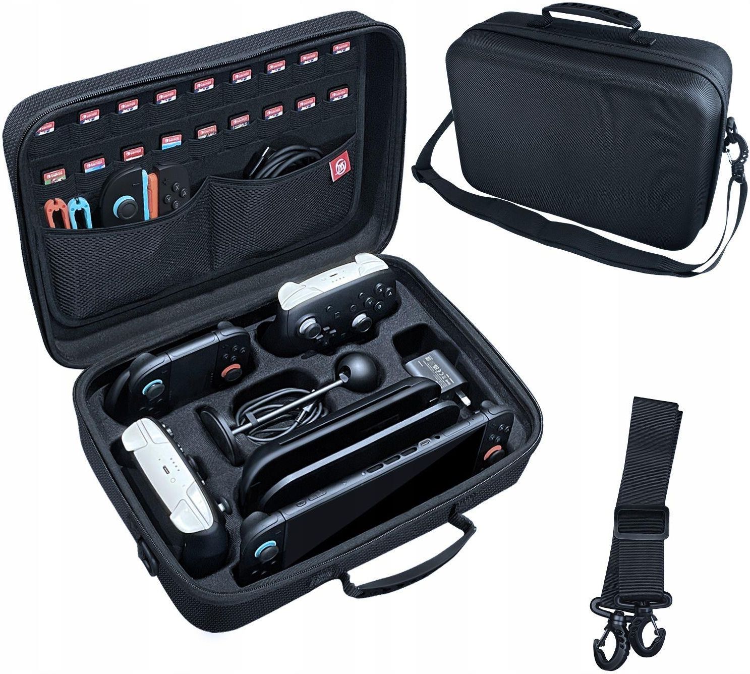?Torba transportowa XXL ? Na konsolę Nintendo Switch 2 oraz pełny zestaw akcesoriów ? Cały zestaw w jednej torbie, jednym miejscu ? Duża pojemność XXL ➜ zabierasz cały zestaw Switch 2 (konsola, dock, kontrolery, zasilacz, kable, gry, itp.) w jednej torbie ? Dedykowana do Nintendo Switch 2 ➜ idealne dopasowanie przegródek, profilowane wnętrze ? Sztywna konstrukcja + pianka EVA ➜ skuteczna ochrona przed uderzeniami, naciskiem i uszkodzeniami w podróży ? Wodoodporny materiał zewnętrzny ➜ sprzęt bezpieczny nawet przy deszczu, wilgoci i przypadkowych zachlapaniach ? Inteligentne wnętrze Anti-Press ➜ przyciski L/R nie wciskają się same, ekran jest chroniony przed zarysowaniami ? Miejsce na aż 18 gier ➜ wszystkie ulubione tytuły zawsze pod ręką, bez dodatkowych etui ? Kompatybilność z kontrolerami Pro / Joy-Con ➜ zmieścisz zarówno oryginalne, jak i zamienniki o zbliżonych wymiarach ? Wygodne noszenie na dwa sposoby ➜ rączka do ręki lub regulowany pasek na ramię – jak Ci wygodniej ? Solidne zamki i metalowe klamry ➜ trwałość i pewność, że torba nie zawiedzie w trasie ? Porządek i organizacja ➜ każdy element ma swoje miejsce – zero chaosu Produkt firmy: JYS Model: JYS-NS2323 / NS2323 Kolor: Czarny ? Skuteczna ochrona Nintendo Switch 2 / NS 2 i akcesoriów Jeśli chcesz zabrać Nintendo Switch 2 razem z całym wyposażeniem – to jest torba dla Ciebie. Zaprojektowana specjalnie do konsoli, docka i wszystkich akcesoriów, które normalnie trzeba nosić osobno. ? Duża pojemność – wszystko ma swoje miejsce ? Co zmieści się w torbie Konsola Nintendo Switch 2 (również w etui ochronnym) Stacja dokująca Nintendo Switch 2 (Dock) Kontroler Pro do Switch 2 Drugi kontroler / dodatkowy pad Zasilacz sieciowy (AC Adapter) Kable HDMI Kamera do Nintendo Switch 2 Uchwyt / Grip do ładowania Joy-Conów Paski Joy-Con (Joy-Con Strap) Do 18 kart z grami (dedykowane kieszenie) Kable, drobne akcesoria i ładowarki ? Wzmocniona ochrona w każdej podróży ? Sztywna konstrukcja oraz gruba piankowa wyściółka EVA chronią konsolę i akcesoria przed uderzeniami, wstrząsami, naciskiem oraz zarysowaniami. ? Zewnętrzny wodoodporny materiał zabezpiecza zawartość przed wilgocią, kurzem i brudem, a torba jest łatwa w czyszczeniu. ? Wygodne noszenie – tak, jak lubisz ? Torba została zaprojektowana z myślą o maksymalnym komforcie w codziennym użytkowaniu. Idealna do podróży, wyjazdów, komunikacji miejskiej i przechowywania sprzętu w domu. ? Możesz nosić ją na ramieniu lub crossbody dzięki płynnie regulowanemu paskowi. ? Alternatywnie wygodne przenoszenie w ręce za pomocą miękkiej, wzmocnionej rączki. Specyfikacja Typ produktu: Duża torba transportowa / etui XXL Przeznaczenie: Nintendo Switch 2 / NS2 + akcesoria Materiał: twarda, wodoodporna tkanina o wysokiej gęstości Wnętrze: formowana pianka ochronna (anti-collision) Zamknięcie: podwójny zamek błyskawiczny Waga: 1065 g Pasek na ramię – regulowany Długość maksymalna paska: ok. 132 cm (52 cale) Długość minimalna paska: ok. 50 cm (19,6 cala) Szerokość paska: ok. 4,7 cm Wymiary zewnętrzne torby Szerokość: 36 cm Wysokość: 25 cm Głębokość: 14 cm W zestawie 1x Futerał 1x Regulowany pasek na ramię