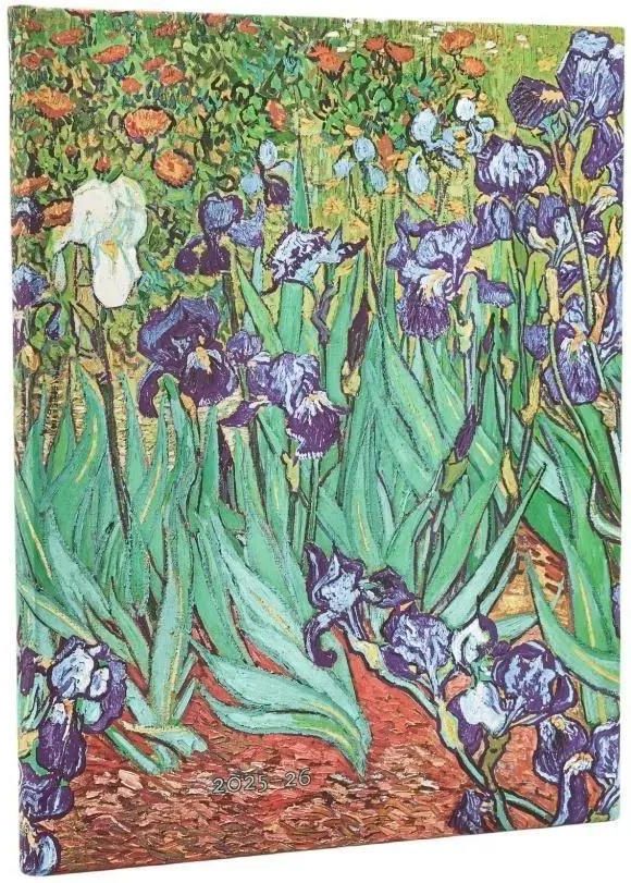 Kalendarz książkowy ultra 25/26 18M Van Goghs paperblanks ✅ ✔️ Kalendarz 18-miesięczny (lipiec 2025-grudzień 2026) ekskluzywnej marki Paperblanks, Okładka z reprodukcją słynnego obrazu Vincenta Van Gogha - Irysy, Format Ultra typu Vertical - cały tydzień rozplanowany jest na 2 stronach z podziałką …