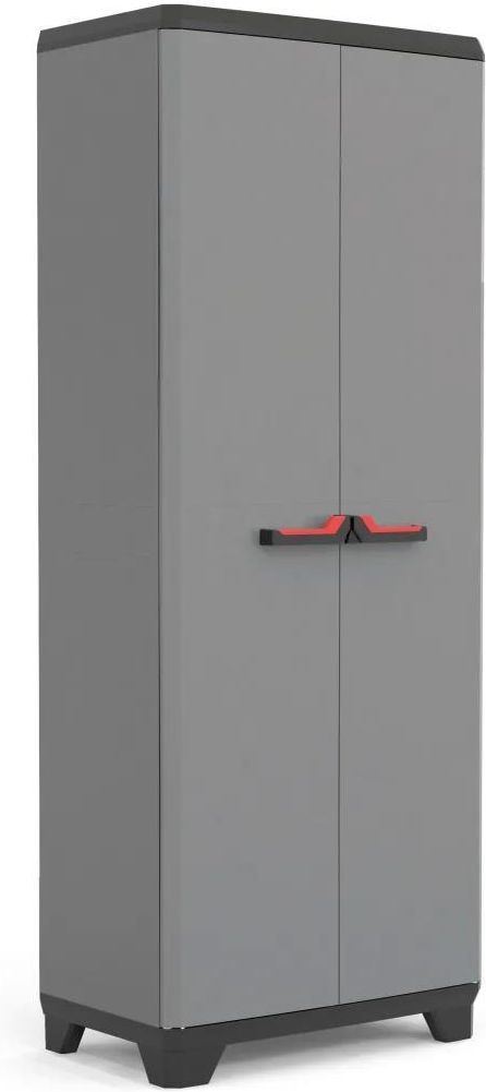 Keter Stilo High, szafa z tworzywa sztucznego Wysoka szafa Stilo została zaprojektowana z myślą o najbardziej wymagających użytkownikach, łącząc funkcjonalność z nowoczesnym designem. To idealne rozwiązanie dla osób, które potrzebują dodatkowego miejsca na przechowywanie w pomieszczeniach gospodarczych, garażu, warsztacie, na balkonie czy tarasie. Dzięki wytrzymałej konstrukcji wykonanej z polipropylenu, szafa charakteryzuje się podwyższoną odpornością na uszkodzenia mechaniczne i wpływ niekorzystnych warunków atmosferycznych. Wymiary Szerokość - 68 cm Głębokość - 39 cm Wysokość - 173 cm Ilość półek - 3 szt Ładowność - 15 kg / 1 półka Cechy produktu Wytrzymała konstrukcja – Wykonana z wysokiej jakości tworzywa sztucznego (polipropylen), odpornego na działanie czynników atmosferycznych i mechanicznych. 3 regulowane półki – Możliwość regulacji wysokości półek pozwala na dostosowanie przestrzeni do własnych potrzeb. Każda półka wytrzymuje obciążenie do 15 kg. Podwójne drzwi z ergonomicznymi uchwytami – Ułatwiają wygodne otwieranie i zamykanie szafy. Możliwość zamknięcia na kłódkę dla dodatkowego bezpieczeństwa (kłódka nie dołączona). Regulowane nóżki – Pozwalają ustawić szafę nawet na nierównej powierzchni, co zwiększa jej stabilność. Łatwość utrzymania czystości – Konstrukcja szafy jest łatwa w czyszczeniu, co pozwala utrzymać ją w idealnym stanie przez długi czas. Wszechstronne zastosowanie – Szafa Stilo sprawdzi się nie tylko w garażu czy warsztacie, ale także jako dodatkowe miejsce do przechowywania na balkonie czy w innych pomieszczeniach gospodarczych. Łatwy montaż – Produkt jest przeznaczony do samodzielnego montażu, co czyni instalację szybkim i prostym procesem. Dlaczego warto wybrać szafę Stilo? Szafa Stilo to połączenie funkcjonalności, wytrzymałości i nowoczesnego designu. Jej wszechstronność sprawia, że znajdzie zastosowanie w wielu miejscach, od pomieszczeń gospodarczych po zewnętrzne przestrzenie jak balkon czy taras. Regulowane półki i nóżki, a także możliwość zamknięcia na kłódkę, zapewniają maksymalną elastyczność i bezpieczeństwo przechowywania przedmiotów.