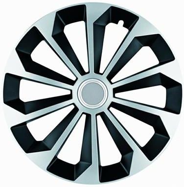 Kołpaki samochodowe 14 Fame Ring czarno-sreb 4sztKołpaki stanowią idealne uzupełnienie do kół auta zapewniając bardziej elegancki wygląd. Montaż jest niezwykle prosty - polega na wciśnięciu kołpaka na felgę poprzez metalowy pierścień dociskowy. W każdym kołpaku został przygotowany otwór na wentyl.