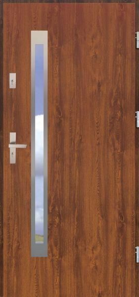 Kolekcja drzwi wejściowych OTELLO obejmuje drzwi z gładkim skrzydłem, które w modelach z przeszkleniem dekoruje panel ze stali nierdzewnej w kolorze INOX bądź ramka PCV.