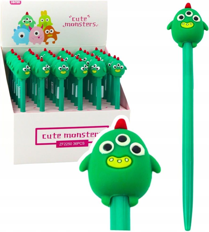 DŁUGOPIS ŻELOWY ZIELONY STWOREK 17 CM / 0,5 MM / NIEBIESKI TUSZ 6932802422503 1 SZTUKA - DŁUGOPIS ŻELOWY ZIELONY STWOREK 17 CM / 0,5 MM / NIEBIESKI TUSZ Długopis żelowy z zielonym stworkiem to wesoły i funkcjonalny dodatek do szkolnej wyprawki, piórnika lub biurka. Dzięki oryginalnej silikonowej ozdobie w kształcie uroczego potworka, długopis od razu przyciąga uwagę. Doskonale sprawdzi się jako codzienne narzędzie do pisania, a jednocześnie jako zabawny element kolekcji papeterii. Długopis ma 17 cm długości i wyposażony jest w precyzyjną końcówkę 0,5 mm, która gwarantuje płynne i czytelne pisanie. Zastosowany niebieski tusz żelowy nie rozmazuje się i pozwala na wygodne notowanie w szkole, pracy czy w domu. Lekka, poręczna forma i zabawny design czynią go doskonałym prezentem dla dzieci i młodzieży, a także miłośników unikalnych gadżetów biurowych. To praktyczny i estetyczny długopis, który łączy w sobie wygodę pisania i radość z użytkowania – idealny do codziennego użytku i wyjątkowy wizualnie. SPECYFIKACJA Wzór: zielony stworek / potworek Kolor tuszu: niebieski Typ: długopis żelowy Grubość pisania: 0,5 mm Długość: 17 cm Materiał: tworzywo sztuczne + silikonowa ozdoba Zastosowanie: szkoła, biuro, dom Rodzaj końcówki: cienka i precyzyjna Styl: kreatywny, zabawny ZAWARTOŚĆ ZESTAWU Długopis żelowy z ozdobą – zielony stworek Certyfikat: CE