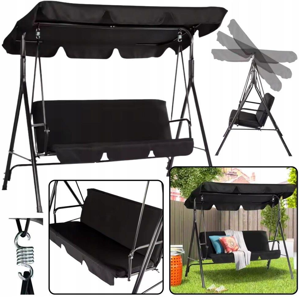 Lean Huśtawka Trzyosobowa Ogrodowa Bujana Materac Czarna Tychy