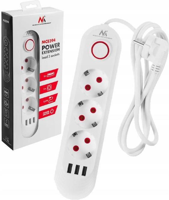 Listwa zasilająca MCE394 W. Przedłużacz 3gniazda 3xUSB, 1.5m Tychy