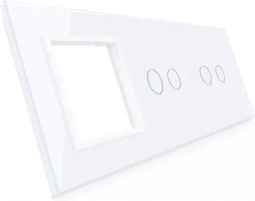 Livolo Ramka Potrójna Szklana Z Miejscem Na Dwa Włączniki Dotykowe Podwójne Oraz Gniazdo (2+2+G) Moduł Biały 7022G-61 Tychy