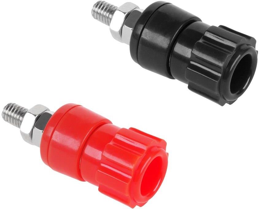 Gniazdo bananowe duże (16mm), plastikowe, przykręcane do obudowy. W komplecie po 1szt. wtyku w kolorze czarnym i czerwonym. Podana cena za kpl. 2szt Specyfikacja Typ złącza: bananowe Rodzaj: gniazdo (złącze żeńskie) Wykonanie: plastikowe Sposób montażu gniazda: przykręcane, do obudowy Montaż kabla: z tyłu, przykręcany Komplet 2 sztuk: 1szt. koloru czerwonego i 1szt. czarnego Wymiary Średnica plastiku: zewnętrzna 16.5mm, wewnętrzna 9.5mm Długość całkowita plastików: 27mm Gwint: średnica 5mm