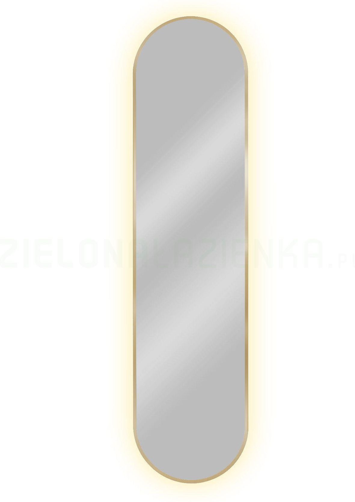 Lustro LED Pastille Złote Zimne Nowoczesne owalne lustro z kolekcji Tiny Border, doskonale sprawdza się, jako lustro do łazienki, czy też lustro do przedpokoju. Jego prosta i elegancka forma sprawia, że lustro nadaje pomieszczeniu świeży a jednocześnie nieco tajemniczy wygląd. Lustro jest idealne do małych pomieszczeń, które optycznie powiększa, również za sprawą światła. Lustro wprowadza do pomieszczenia niezwykle przytulny, wręcz kameralny nastrój, okraszony nutą nowoczesności. Jest to produkt najwyższej klasy, produkowany w Polsce. Łączy zarówno styl jak i funkcjonalność. Taflę lustra okala minimalistyczna ramka w czterech kolorach do wyboru: biały, czarny, srebrny, złoty. - lustro łazienkowe - produkt przystosowany do użytkowania w łazience - bezpieczne, polerowane krawędzie - w 100% wyprodukowane w Polsce - tafla lustra crystal (lustro najwyższej jakości) - łatwy montaż na ścianie - głębokość 4 mm - ramka wykonana w technologii TINY to smukła i idealna forma obramowania lustra - najwyższej jakości ultra czyste lustro - produkt wykonany oraz spakowany ekologicznie (dbamy o środowisko naturalne eliminując wszystkie szkodliwe czynniki produkcyjne oraz starannie dobieramy materiały pakowe)