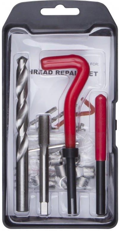 ZESTAW DO NAPRAWY GWINTU M14nbsp;x 1.25Y Y YKOD PRODUKTU: B.1956C ZAMIENNIKI: 20220805 1957 QUATROS QS14187K SATRA S-Y38K OPIS TECHNICZNY: Zestaw przeznaczony do wymiany zerwanego gwintu np. w: - głowicy. - obudowach. - bloku silnika itp.. Skład zestawu: - kpl. wymiennych wkładek - sprężyn gwintowanych. Sprężyny ściskają się przy wkręcaniu ułatwiając wkręcanie i rozprężają się blokując odkręcanie. - wiertło HSS - gwintownik HSS - pokrętło. - wybijak do usuwania zakończenia sprężyny służącego do jej wkręcania. nbsp;SKŁAD ZESTAWU: - kpl. wymiennych wkładek - sprężyn gwintowanych. Sprężyny ściskają się przy wkręcaniu ułatwiając wkręcanie i rozprężają się blokując odkręcanie. - wiertło HSS - gwintownik HSS - pokrętło. - wybijak do usuwania zakończenia sprężyny służącego do jej wkręcania.SPOSÓB DZIAŁANIA: Specjalnym wiertłem z zestawu /nie zewnętrznym/ przewiercamy stary gwint. Za pomocą gwintownika wykonujemy gwint dla sprężynki /wkładki. Następnie przyrządem do montażu wkładki wkręcamy sprężynkę wykonując nowy gwint. Trzpieniem usuwamy uchwyt wkładki, wybijamy go. UWAGA, Wkłady do rozmiaru M9 (czyli mniejsze niż M10) wkręcamy umieszczając uchwyt do wkładek o d zewnętrznej strony (nie w środku)
