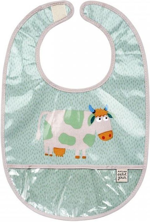 Śliniaczek - niezbędnik dla dziecka podczas nauki jedzenia. Stylowy śliniak z serii Farma! Zabezpieczy ubranka podczas jedzenia. Jeśli coś niechcący ;) nie trafi do ust maluszka to z dużą szansą znajdzie się bezpiecznie w kieszonce. Dzięki temu, podczas tych pierwszych momentów próbowania czegoś innego, niż mleko mamy, uda się zachować porządek. Wiadomo, że początki bywają trudne ;) Zaopatrując się w śliniaczek możesz sprawić, że posiłek będzie przygodą i radością dla mamy czy taty jaki i dla dziecka. Bajkowe grafiki wywołają uśmiech, pomogą skierować uwagę na czynność karmienia. Śliniaki marki Petit Jour są wykonane z bawełny, wodoodporne. Są zapinane na rzep, z kolorową lamówką. Ceratkowo-bawełniany śliniak jest wyprodukowany bez użycia ftalanów, BPA czy innych, niebezpiecznych substancji!