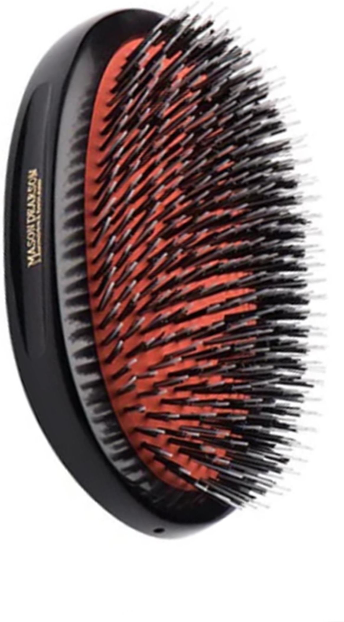 Szczotka BN1M 'Popular Bristle and Nylon Military' od Mason Pearson to największy model, stworzony specjalnie do czyszczenia, rozczesywania i rewitalizacji normalnych i grubych, bardzo krótkich włosów. Idealna dla mężczyzn lub innych osób z ultra krótkimi fryzurami.Szczotka jest wykonana z ośmiu rzędów etycznie pozyskiwanego włosia dzika oraz nylonu na gumowej podstawie, co zapewnia maksymalne rozprowadzenie naturalnych olejków pielęgnacyjnych włosów oraz stymuluje krążenie krwi w skórze głowy. To tajemnica mocnych, gładkich włosów o zdrowym blasku.Ręcznie wykonana w Anglii z ponad 130-letnią tradycją rzemieślniczą, oparta na innowacyjnych technikach opracowanych przez pioniera Masona Pearsona. Stworzona, aby służyć przez całe życie i starannie zaprojektowana bez uchwytu, aby dać Ci pełną kontrolę nad każdym pociągnięciem.W zestawie znajduje się szczotka do czyszczenia, która pomoże Ci utrzymać szczotkę w doskonałym stanie. Aby jej użyć, po prostu przesuń szczotkę do czyszczenia po podstawie szczotki do włosów i przez jej włosie, powtarzaj, aż będzie czysta i wolna od włosów.TYP WŁOSÓWNormalne i grube, bardzo krótkie włosy.Sposób użycia:Zaleca się szczotkowanie włosów 100 razy dziennie, aby wzmocnić je i nadać im zdrowy blask.